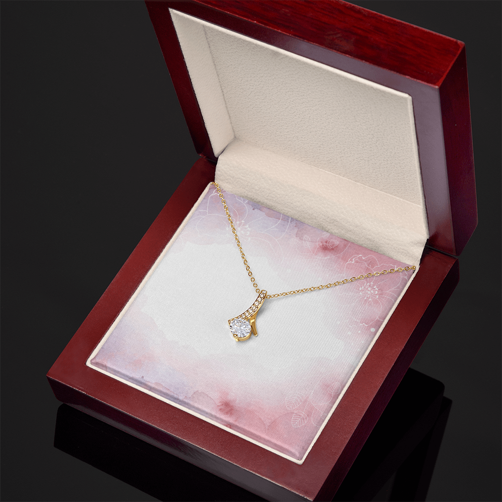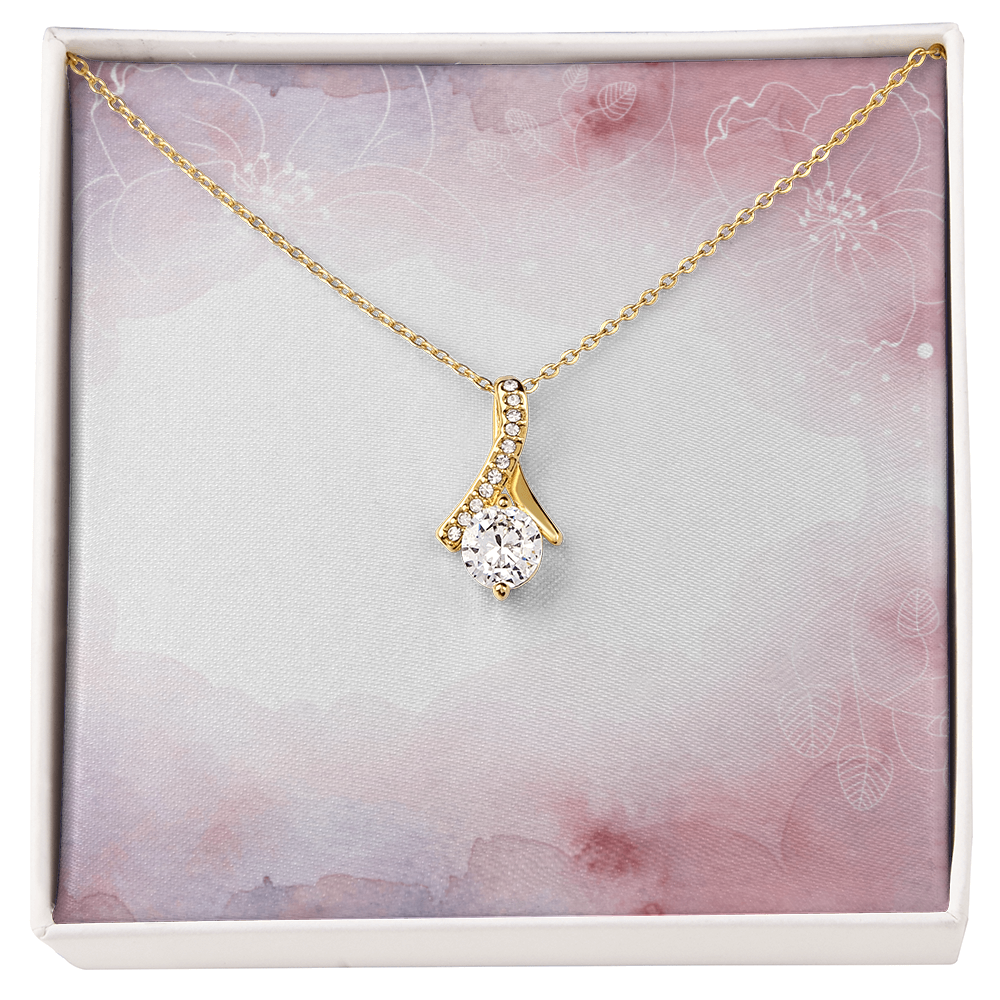 Imagine her reaction when she opens this stunning gift! The Alluring Beauty necklace features a petite ribbon shaped pendant that is sure to dazzle your special someone. Whether it's a birthday or anniversary, make sure to get her a gift she will love for years to come.